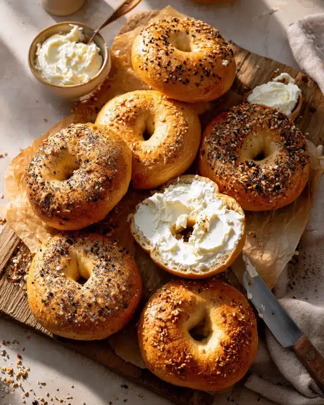 Mini Bagels: Shape into 8 smaller rounds and bake 2–3 minutes less.