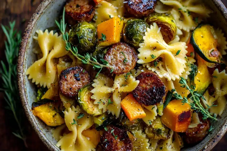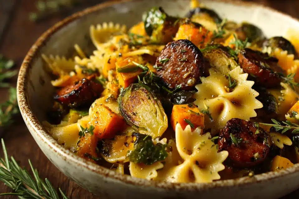 This easy autumn pasta dish features roasted butternut squash, savory sausage, and tender pasta tossed in a creamy sauce — perfect for cozy weeknights and fall meals.
