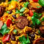 This hearty one-pot dish combines smoky sausage, black beans, and rice for a bold, comforting dinner that’s quick, easy, and packed with protein and flavor