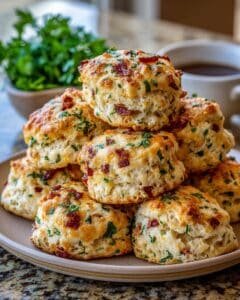 Shredded cheddar, mozzarella, or a mix of both gives moisture, fat, and flavor. The cheese melts into the biscuit and helps with browning.