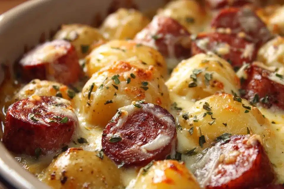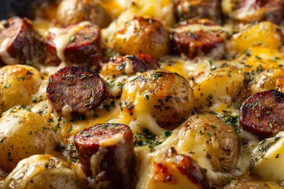 Cheesy Ranch Potatoes and Smoked Sausage is a creamy, one-dish comfort meal made with golden roasted potatoes, smoky sausage, ranch seasoning, and melted cheddar. Perfect for weeknights or potlucks.