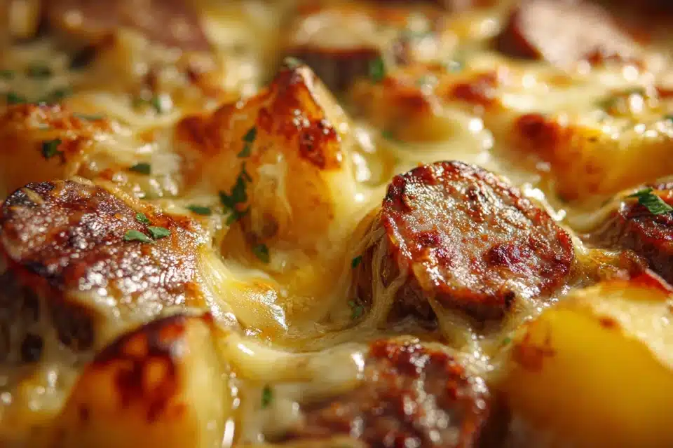 This Cheesy Ranch Potatoes and Smoked Sausage bake is the ultimate one-dish comfort meal. Roasted potatoes, savory sausage, and gooey melted cheese all tossed in creamy ranch — perfect for cozy dinners or crowd-pleasing potlucks.
