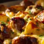 If you’re looking for a crowd-pleasing, ultra-comforting dinner that comes together with minimal effort, these Cheesy Ranch Potatoes and Smoked Sausage are the answer. This dish is loaded with golden roasted potatoes, crispy bits of smoked sausage, and a creamy, cheesy ranch coating that ties everything together.
