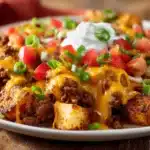 This recipe is perfect for weeknights when you want bold flavors but also need something filling and low-fuss. The crispy edges of the potatoes, the juicy taco meat, and the creamy, cheesy topping come together like a dream. You can serve it as a main dish with a simple salad, or as a party-friendly side that steals the spotlight.