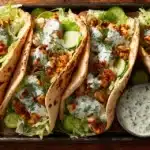 These Sheet Pan Chicken Pitas with Herby Ranch are a vibrant, no-fuss meal that brings together bold flavor, color, and freshness — all roasted on a single pan. Juicy, spiced chicken strips are roasted alongside sweet bell peppers and onions, then stuffed into warm pita pockets and drizzled with a cool, homemade herby ranch sauce.