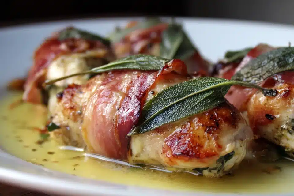 Elegant Italian chicken saltimbocca with prosciutto, sage, and a buttery white wine sauce. Fast, flavorful, and made in one skillet.