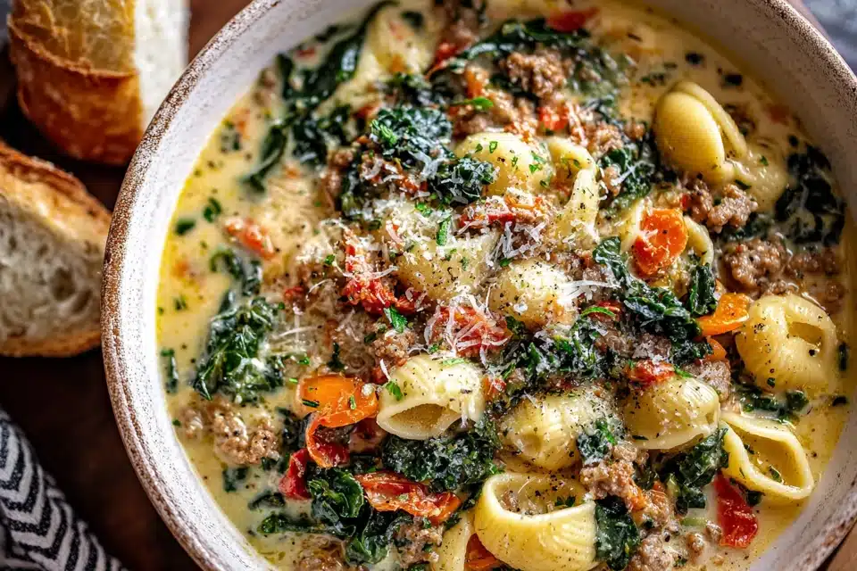 Rooted in Italian-American kitchens, this rustic soup brings together hearty ingredients and homestyle flavors. It’s a satisfying, one-pot meal that blends spicy or sweet Italian sausage with vegetables, broth, tomatoes, and pasta—each spoonful delivering a balance of warmth, texture, and soul-soothing flavor.