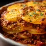 Hobo Casserole is the kind of dish that takes you straight back to comforting, down-home meals. Made with seasoned ground beef, tender potatoes, onions, and a creamy, cheesy sauce, it’s baked until golden and bubbling — the perfect one-dish dinner that feeds a hungry family with minimal prep.