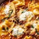 With ground beef or sausage, crushed tomatoes, Italian herbs, and broken lasagna noodles simmered together, it comes together in under an hour. A swirl of cream cheese or ricotta stirred in at the end makes it irresistibly smooth and hearty. This is the kind of soup that warms you from the inside out and tastes even better the next day.