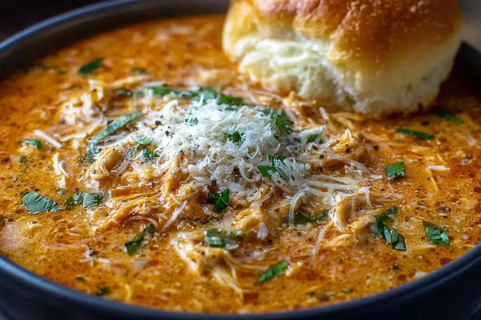 Crock Pot Creamy Chicken Parmesan Soup – Cozy, Cheesy & Crowd-Pleasing