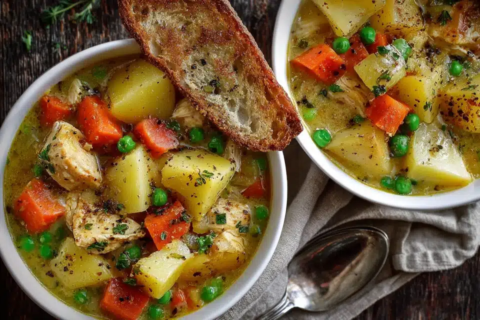 With tender chunks of chicken, soft potatoes, carrots, and a rich, herb-infused broth, this stew brings together the essence of rustic cooking and modern convenience. Popular across American and European kitchens, this dish is beloved for its simplicity, heartiness, and adaptability through the seasons.
