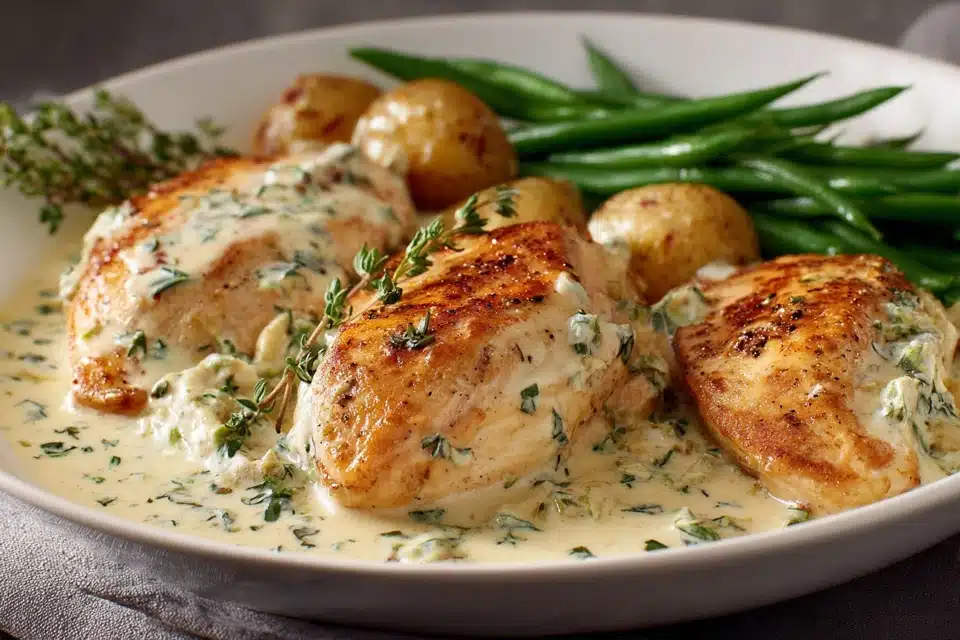 This creamy chicken Boursin sauce recipe is a fast, flavorful dish that brings gourmet flavor to your weeknight table without any fuss. Tender pan-seared chicken breasts are smothered in a luscious sauce made from Boursin cheese, garlic, and a splash of cream—creating a melt-in-your-mouth meal that feels indulgent but takes just 30 minutes.