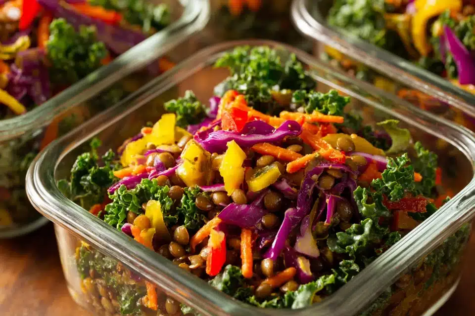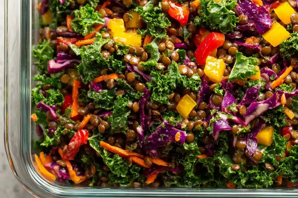 This salad is a powerhouse of plant-based nutrition. Lentils provide high-quality protein, fiber, and iron, while kale brings antioxidants, calcium, and vitamins A, C, and K.