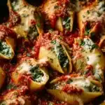 Spoon remaining 1–1½ cups marinara sauce over the shells. Sprinkle with 1–1½ cups shredded mozzarella cheese.Cover loosely with foil and bake at 375°F for 20 minutes. Uncover and bake an additional 10–15 minutes until cheese is melted and lightly golden. Let rest for 5 minutes before serving.