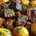- Slow cook: Cover and cook on LOW for 8–9 hours or HIGH for 4–5 hours, until beef is fall-apart tender and potatoes are soft but intact.