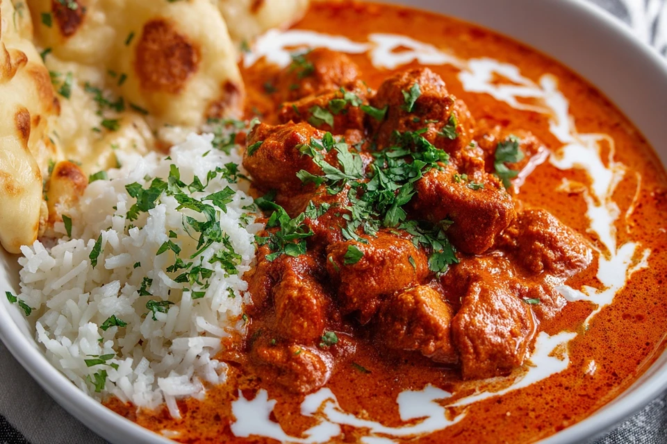 Tender marinated chicken simmered in a rich, creamy tomato-based sauce infused with Indian spices. A restaurant-style dish made easily at home in one pan.