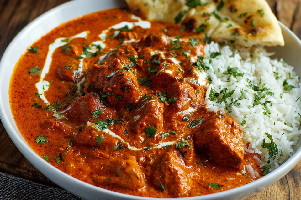 Tender marinated chicken simmered in a rich, creamy tomato-based sauce infused with Indian spices. A restaurant-style dish made easily at home in one pan.