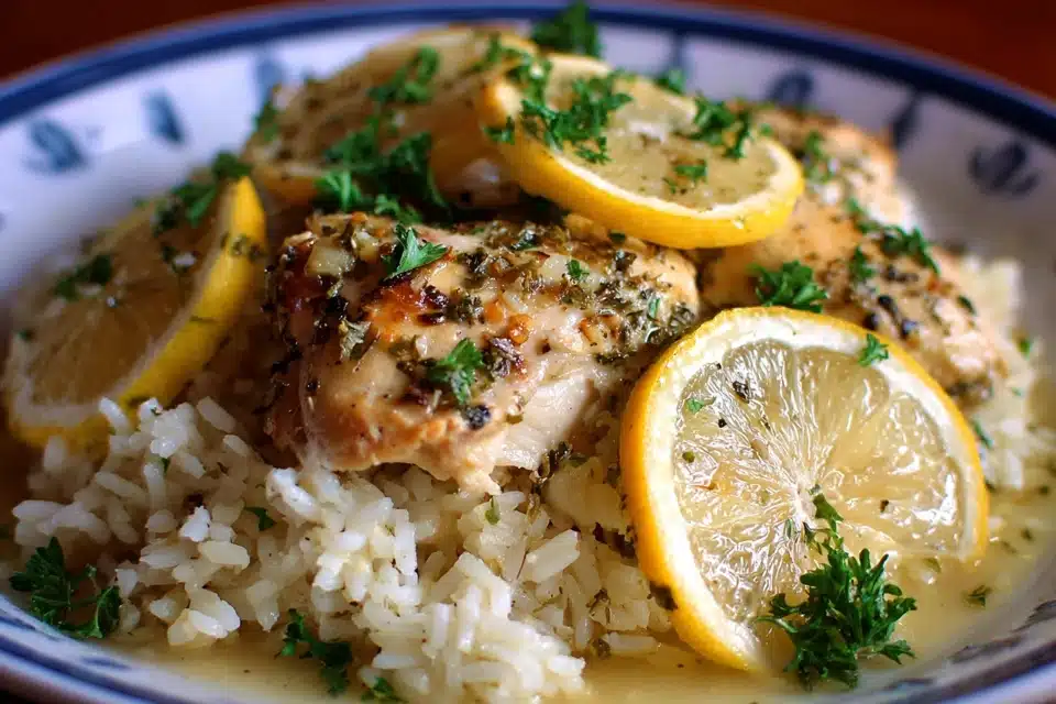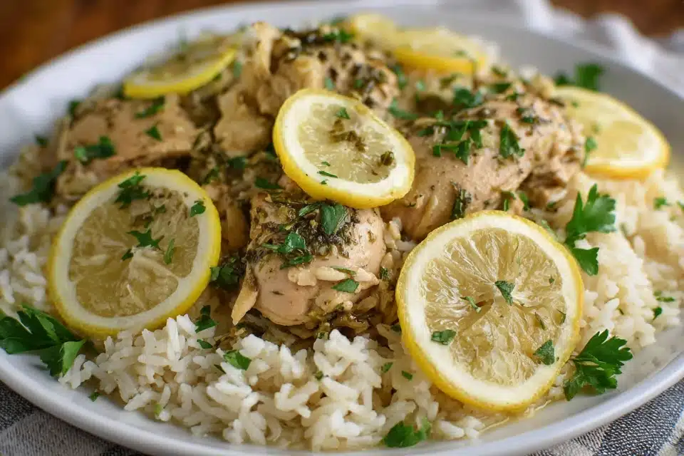 A bright and comforting Slow Cooker Lemon Herb Chicken and Rice recipe made with juicy chicken thighs, fluffy lemon-infused rice, and fresh herbs. One-pot, hands-off, and full of flavor.