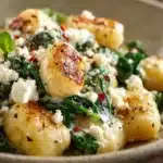 Creamy Gnocchi with Spinach and Feta is the kind of weeknight dinner that feels indulgent but comes together in under 30 minutes. It’s a dish that combines soft, pillowy gnocchi with a velvety, creamy sauce, wilted baby spinach, and tangy crumbles of feta cheese.