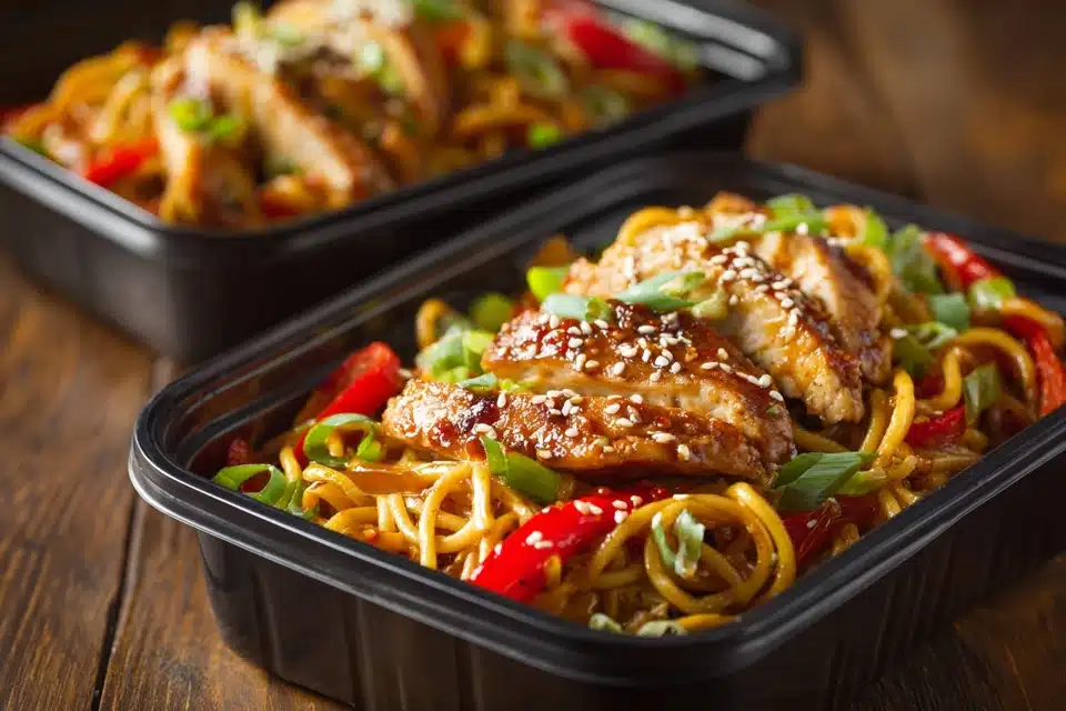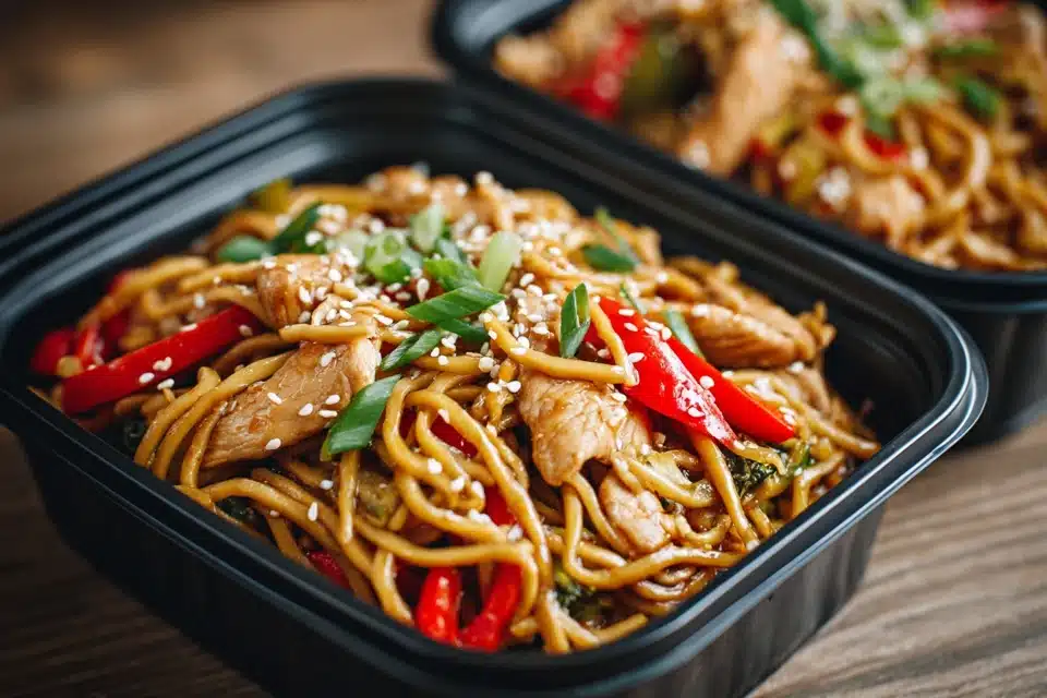 Macro Friendly High Protein Chicken Chow Mein Noodles Meal Prep