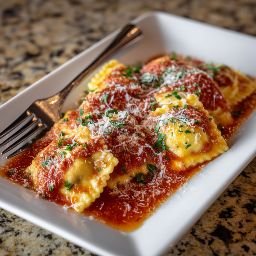 6. Plate ravioli, spoon sauce over, and garnish with basil or Parmesan.