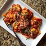 6. Plate ravioli, spoon sauce over, and garnish with basil or Parmesan.