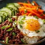 Korean Ground Beef Bowl is a fast, flavor-packed meal that brings the sweet, savory, and slightly spicy magic of Korean cuisine to your dinner table in under 30 minutes. Made with browned ground beef simmered in a soy garlic ginger sauce and served over rice with fresh toppings, this dish is the definition of simple yet sensational.