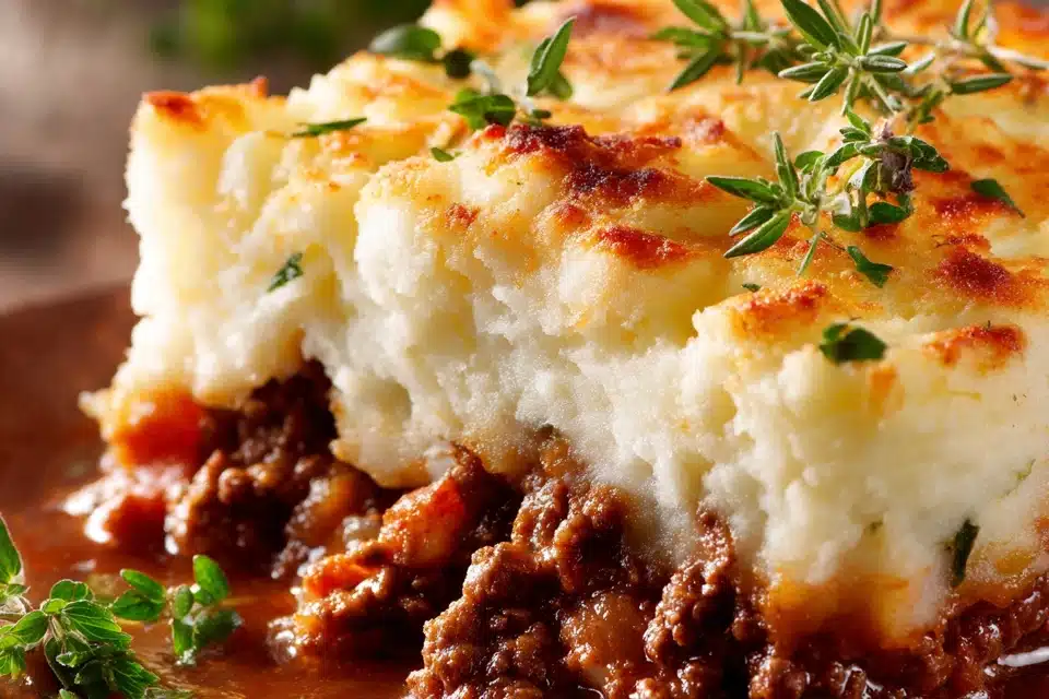 Cottage pie uses ground beef, while shepherd’s pie uses ground lamb. Both feature a mashed potato topping and savory meat filling.