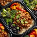 These hot honey ground beef bowls are spicy-sweet, protein-packed, and perfect for meal prep. Paired with brown rice, black beans, and crisp veggies, they’re high in fiber and full of flavor.