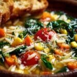 A cozy, zesty Mediterranean soup filled with orzo pasta, tender vegetables, fresh spinach, and bright lemon — perfect for meal prep or light dinners.