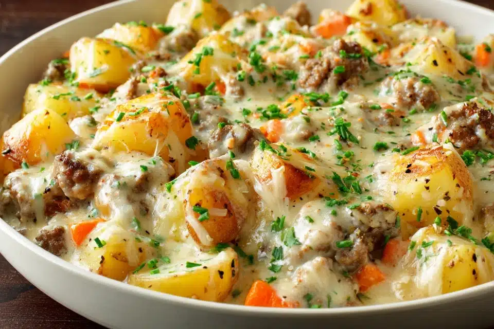 One-Pan Creamy Meat & Potato Skillet – Easy Dinner in 30 Minutes!