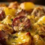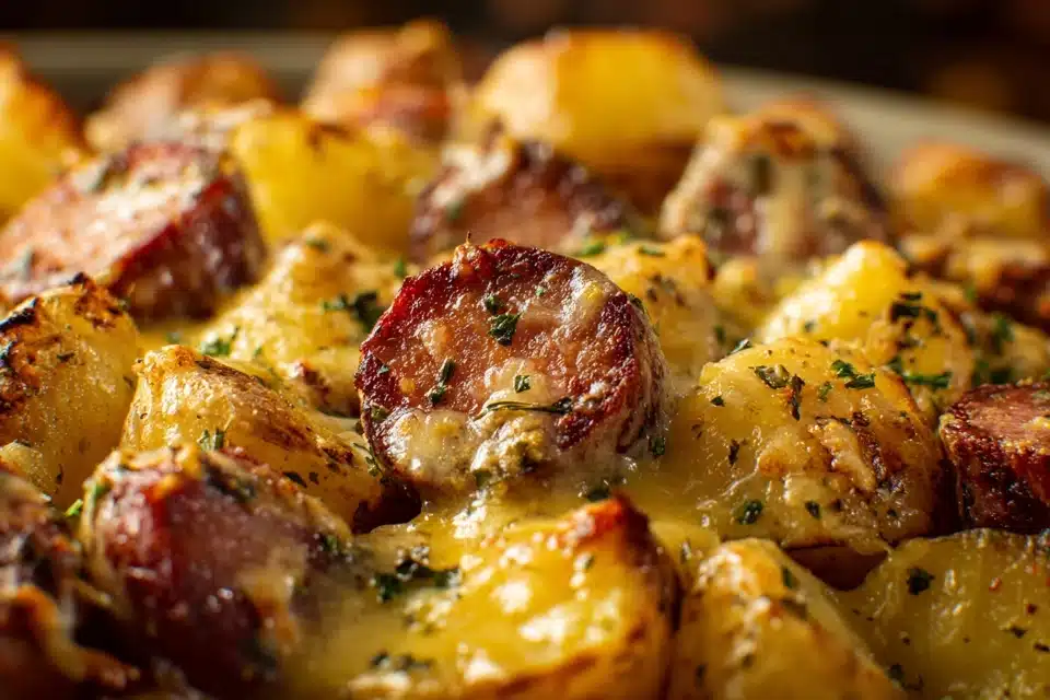 This recipe brings together humble ingredients and turns them into a craveable, rustic meal that always disappears fast—whether you’re feeding a hungry family or hosting game day guests. You get golden potatoes crisped to perfection, slices of smoky sausage, and a creamy, cheesy finish that ties it all together.