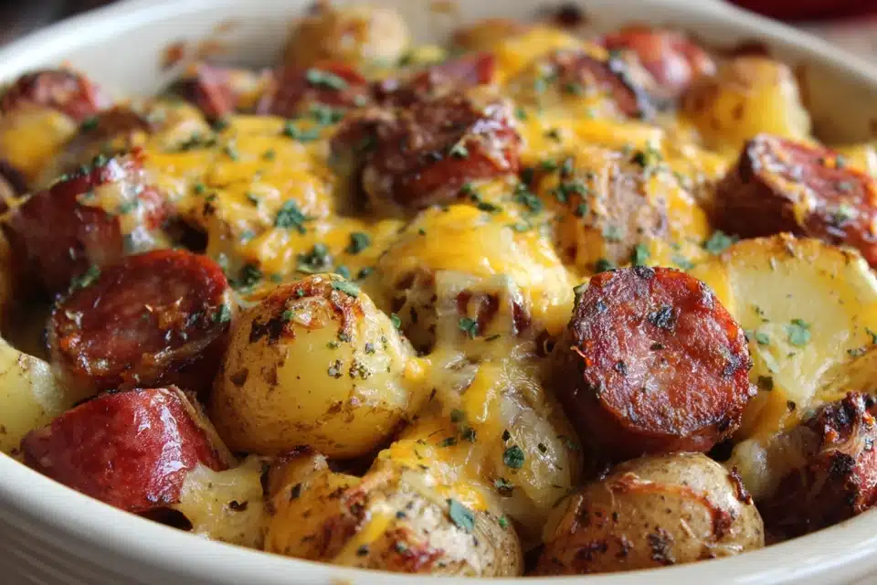 A hearty casserole of roasted ranch-seasoned potatoes, savory smoked sausage, and melted cheddar—perfect for dinner, meal prep, or potlucks.