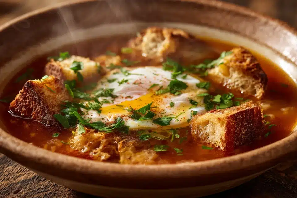 It’s economical, deeply flavorful, and surprisingly hearty. The texture of softened bread, silky broth, and gently poached eggs makes it feel far more luxurious than it is. One spoonful and you’ll understand why this classic has stood the test of time.