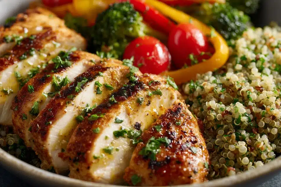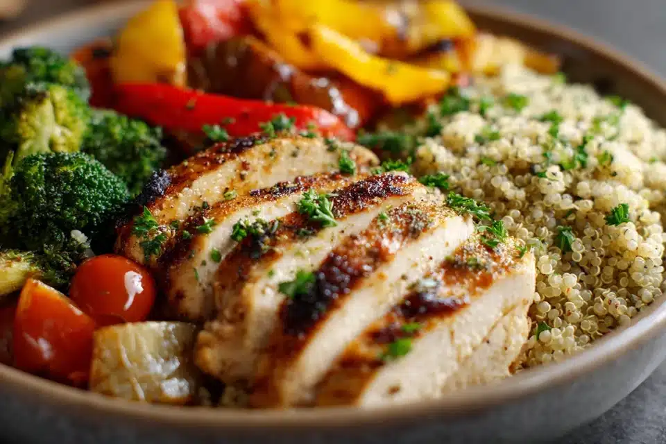 Powerful, fresh, and packed with vibrant flavor, this Chicken and Quinoa Power Bowl is the high-protein meal prep recipe your week’s been missing. With juicy grilled chicken, fluffy quinoa, and a colorful medley of roasted and raw vegetables, it brings nourishment and balance without sacrificing taste.
