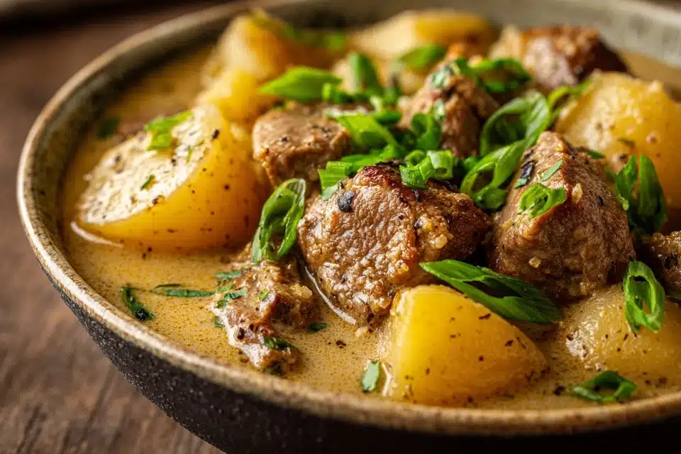 Steak and potatoes are a timeless comfort food pairing — and turning them into a rich, hearty soup is one of the coziest ways to enjoy them. This Easy Steak & Potato Soup is a rustic, filling recipe that brings together tender seared beef, buttery potatoes, and a savory broth infused with herbs, garlic, and onions.