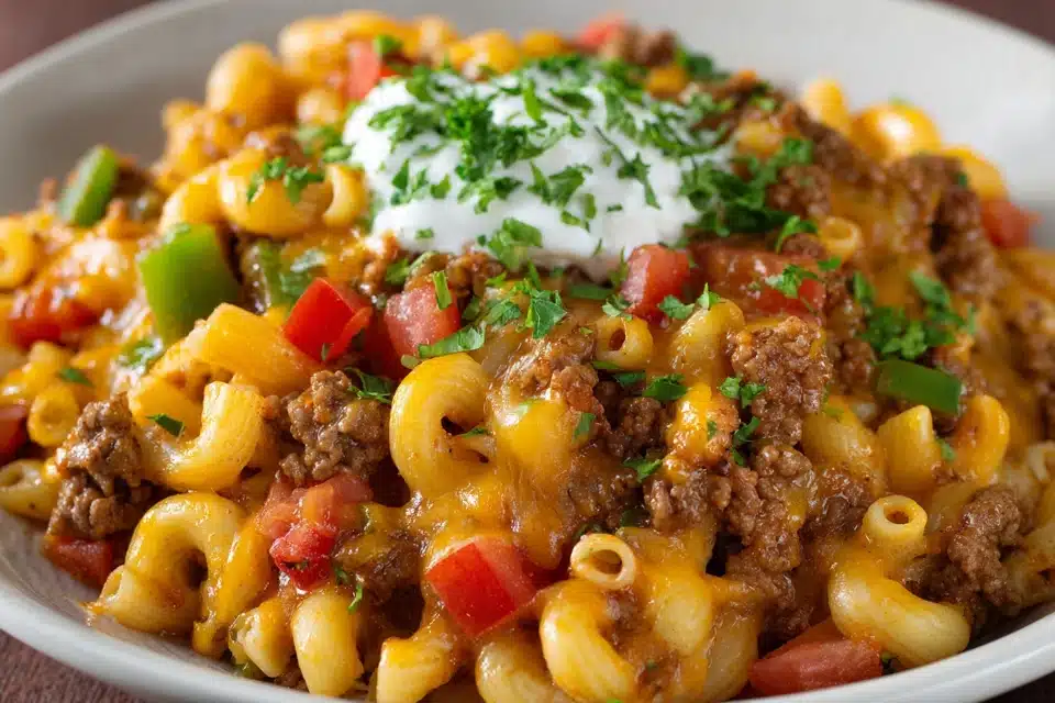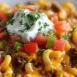 A cheesy, one-skillet taco mac combining seasoned ground beef, pasta, tomatoes, and melty cheddar for the ultimate comfort meal in under 30 minutes.