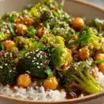 This Garlic Broccoli Stir Fry with Chickpeas is a vibrant, protein-packed plant-based dish that’s perfect for busy weeknights. Ready in under 25 minutes, it combines crisp-tender broccoli and hearty chickpeas with bold garlic and a simple, savory sauce that brings everything together.