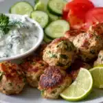 These Greek turkey meatballs are juicy, herby, and served with a cool, creamy tzatziki sauce — perfect for light dinners, meal prep, or Mediterranean wraps.