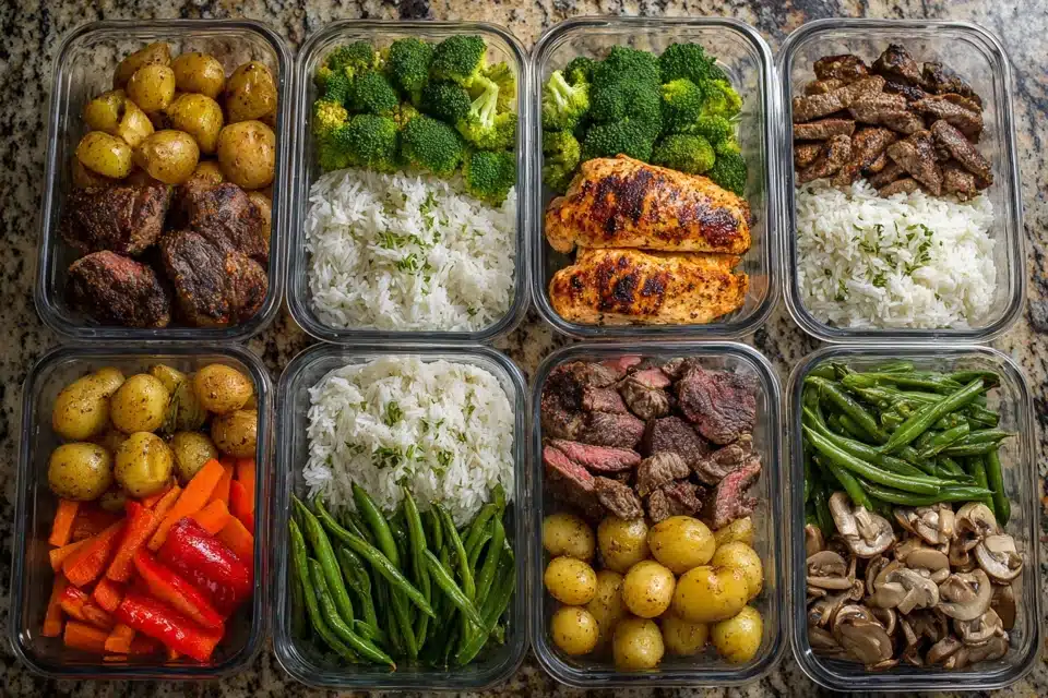 - Assemble: Portion potatoes, steak, and green beans into prep containers.